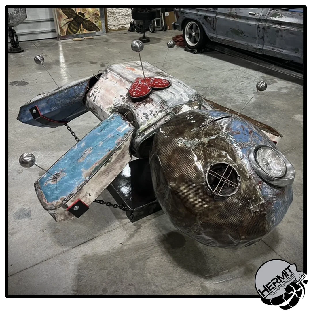 Hermit Garage Inc., along with artist Jason Sanders, provides custom sculptures, frames, and other unique metal fabrications. With the use of steel, aluminum, and reclaimed automotive parts, each piece has both industrial girt and fine art detail.